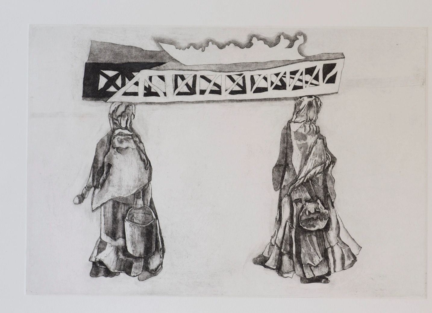 Rapunzel, Rapunzel, let down your long hair: Covid 19 Etching 30cm x 30 cm